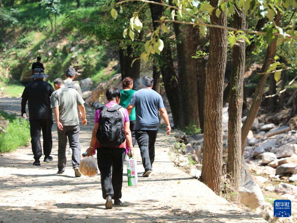 8月16日,记者去往南马庄乡范庄旺村途中,遇到部分回家的村民。新华社记者 田策 摄
