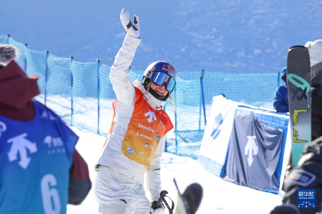 2024年12月7日,在河北张家口崇礼云顶滑雪公园举行的2024-2025赛季国际雪联自由式滑雪u型场地技巧世界杯崇礼站女子组比赛中,中国选手谷爱凌以90.00分的成绩夺得冠军。新华社发(武殿森摄)