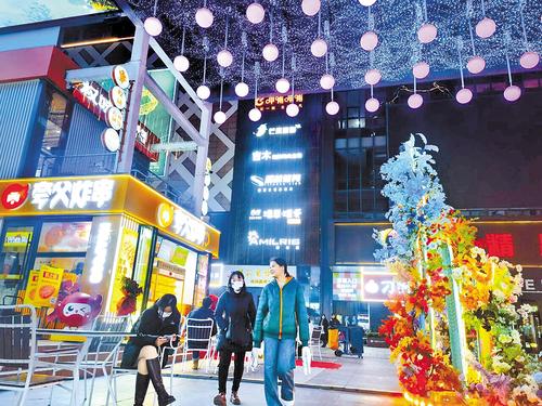 11月28日晚,石家庄湾里庙步行街,游客正在逛街游玩。记者 董昌 摄