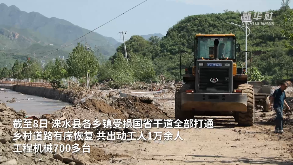 截至8日,涞水县受损国省干道全部打通,乡村道路有序恢复,共出动工人1万余人,工程机械700多台。
