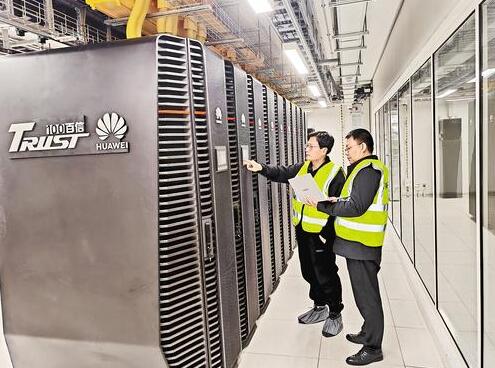 1月11日,在位于廊坊市的河北人工智能计算中心机房,运维人员在例行巡检。 河北智能计算科技有限公司供图