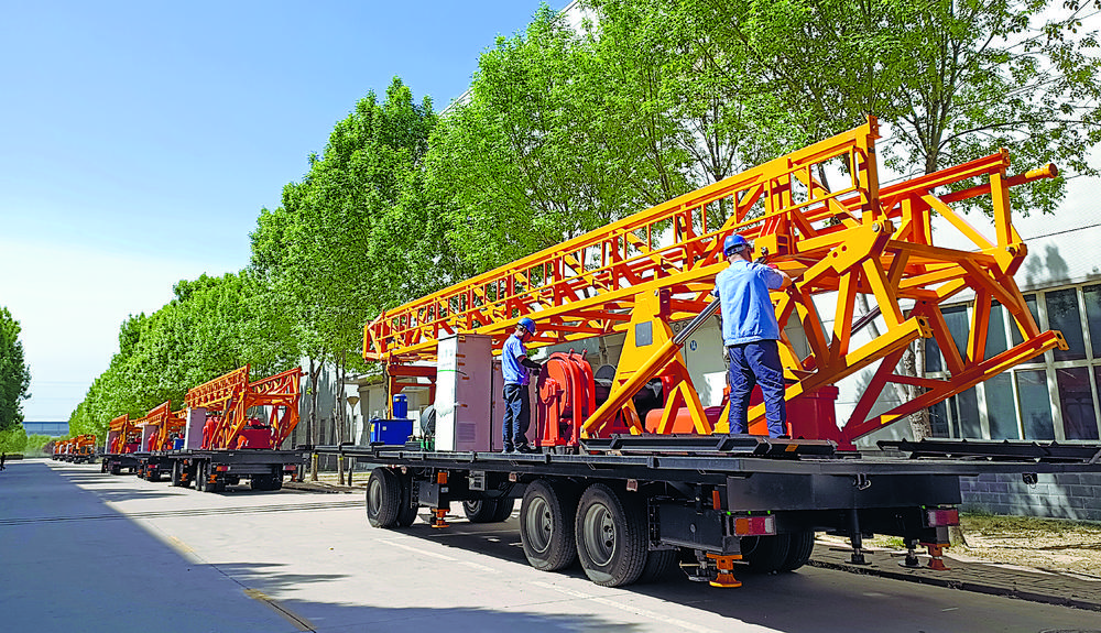 在产品试验场,两台拖车钻机正在同时进行试验调试,不远处完成试验检测的拖车钻机整装待发,即将发往港口交付海外用户。“这是我们公司正在开展的重点出口产品保交付大会战劳动竞赛。今年公司国际订单超两亿元,为确保出口产品按期保质交付,公司各单位协调联动,相互补位,齐心协力保配套、保进度,目前已完成100多台出口拖车钻机的交付任务啦!”石煤机公司总工程师杨阳欣喜地对记者说。