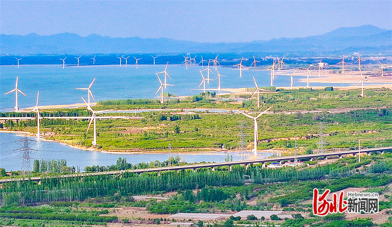 近日拍摄的官厅水库国家湿地公园内的风电设施。 河北日报记者 耿 辉摄