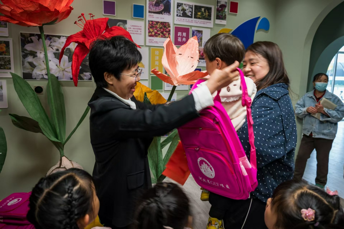 在“知识竞答环节”,孩子们踊跃答题,争做花卉科学小达人。在“才艺展示”环节,孩子们争相上台,尽情展示才艺。大石砬村党支部书记孙喜玲在发放礼品前勉励孩子们:“始终眼里有光、心中有爱、脚下有根,未来用知识让家乡开出更美的‘致富花’!”