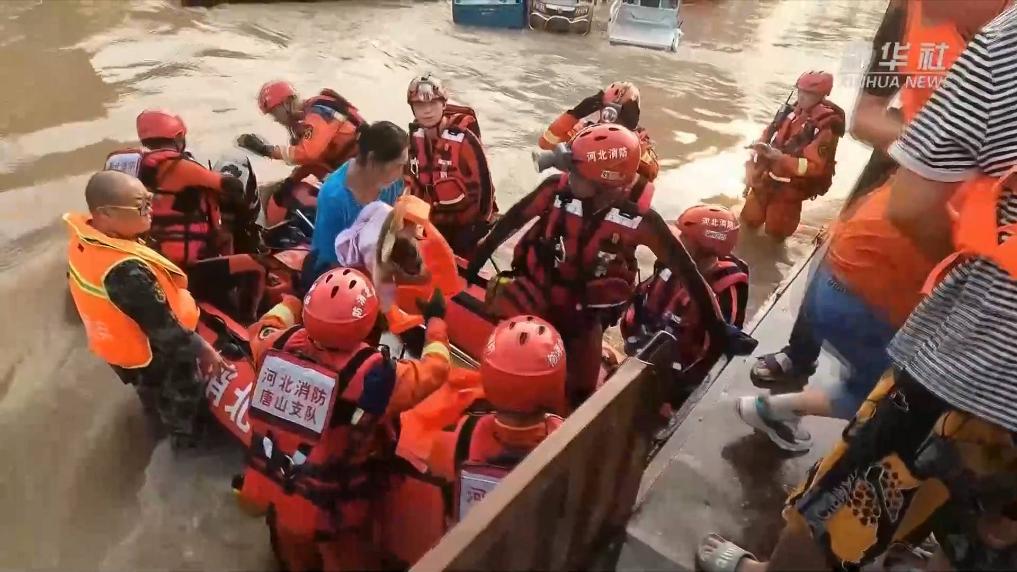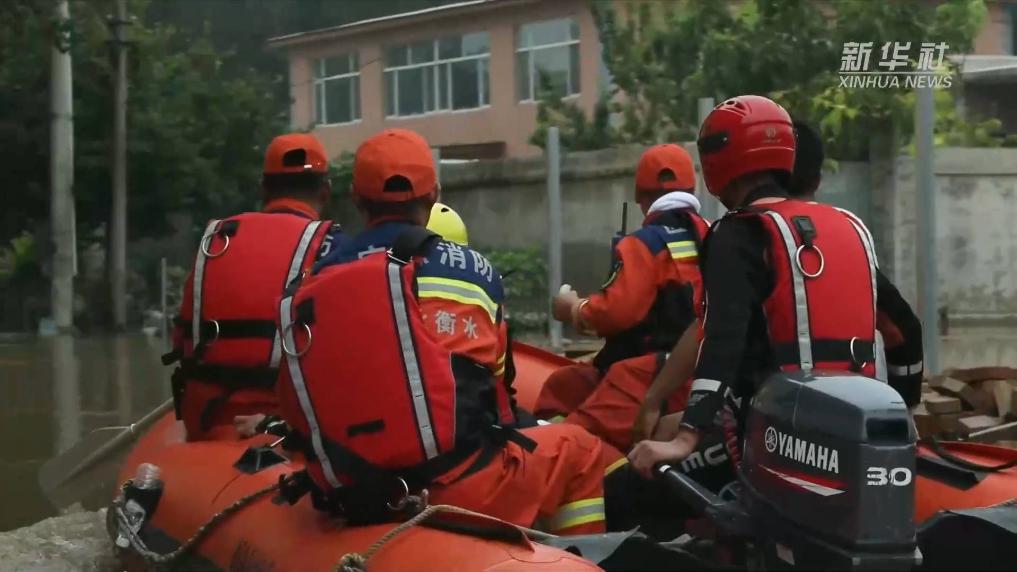 新华社记者跟随衡水市消防救援支队,乘冲锋舟进入被水围困的码头镇沙窝村。在沙窝村村民服务中心院内,水位深及成年人大腿的高度。经熟悉路况的热心村民带路,救援队为年龄大、行动不便的留守村民送去生活物资。当天,在涿州市刁窝镇,经唐山和沧州两地消防等救援力量通力合作,涿州市靖雅学校安置点内的1400余名来自周边6个村庄的转移安置群众全部脱困。