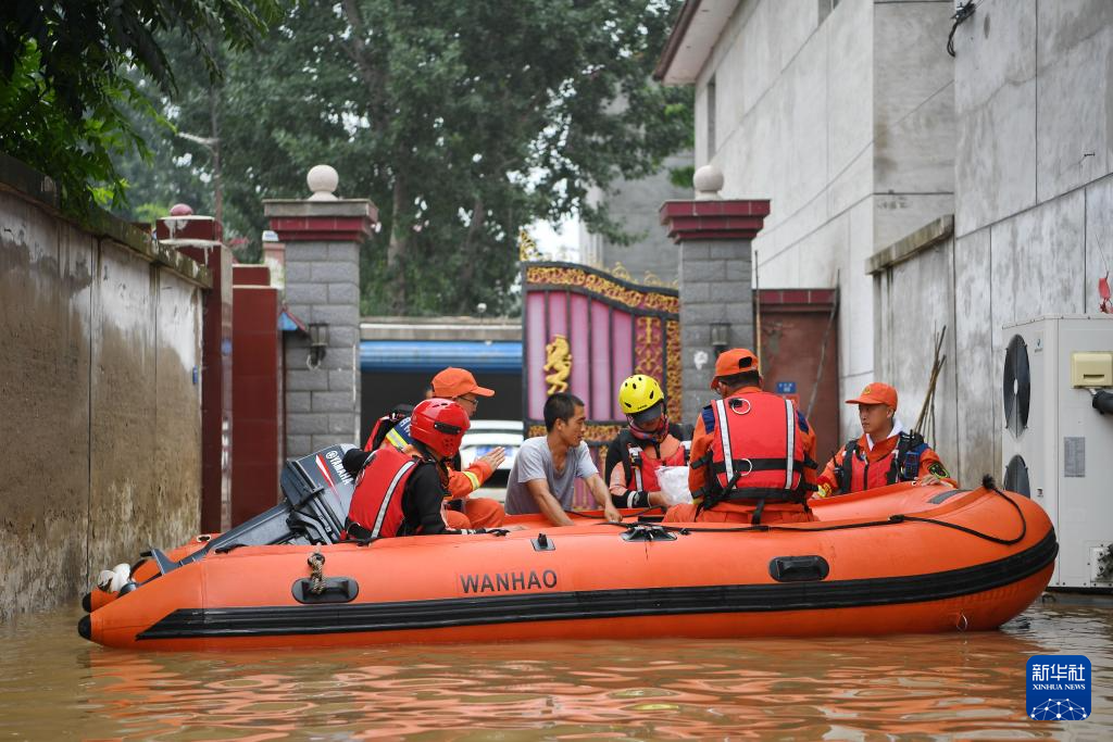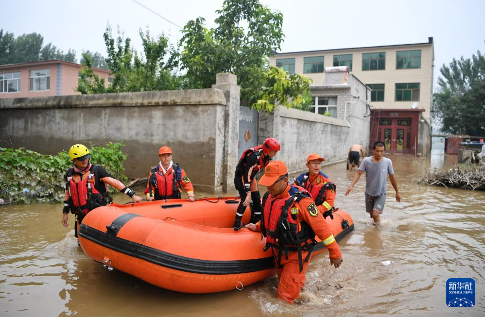 8月3日,衡水市消防救援支队救援人员在涿州市码头镇沙窝村内开展救援工作。