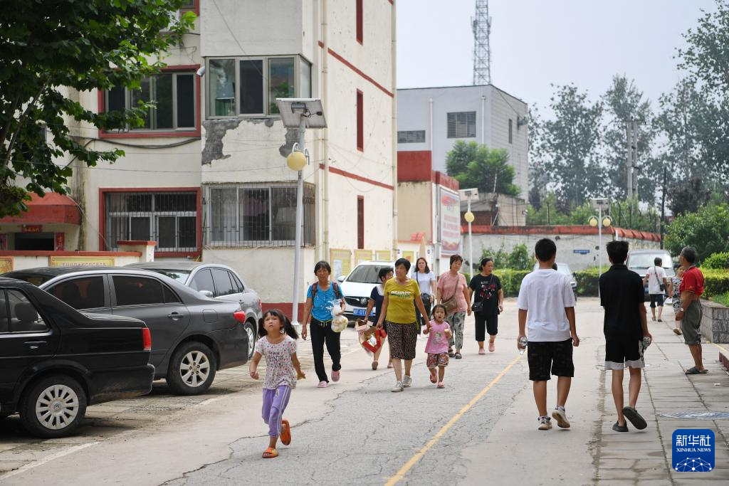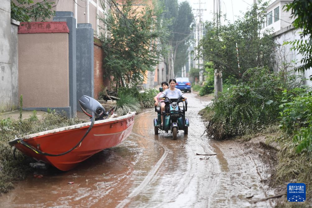 8月3日,涿州市码头镇北高家庄村居民在街道上骑行。