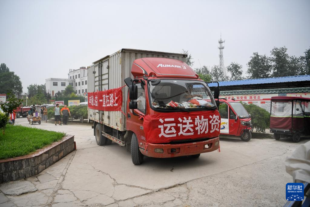 8月3日,衡水市消防救援支队救援人员在涿州市码头镇沙窝村为受灾群众运送物资后准备返回。
