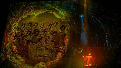 图为《白石彩绘散乐浮雕》多媒体创意秀节目现场