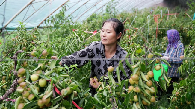 近日,河北省黄骅市的大棚冬枣开始进入成熟期,果农开始适时采摘,供应市场。