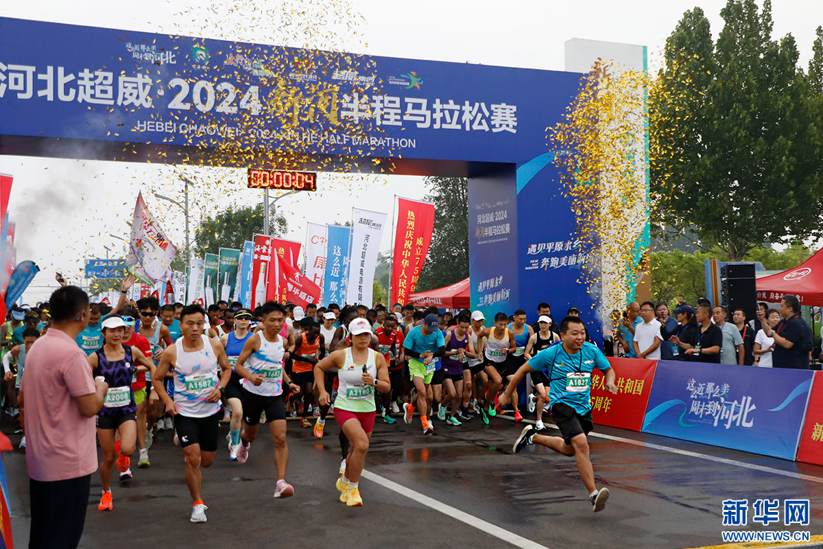 新华网石家庄9月8日电(王立鹏)河北超威·2024新河半程马拉松赛9月8日在河北省邢台市新河县举办。本届马拉松赛事吸引了2000余名国内外跑者参与。