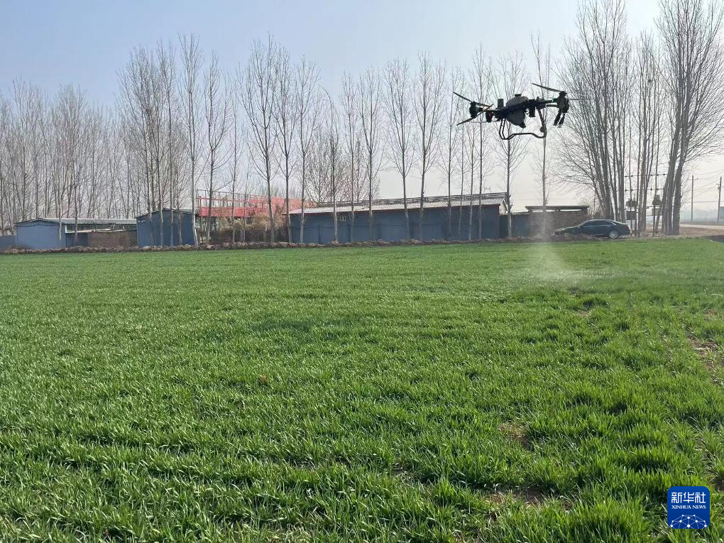 在邯郸市邯山区苗庄村的小麦良种繁育示范方里,种植大户苗增寿在操控植保无人机为麦田喷施生物除草剂和杀菌剂。“通过特定生物制剂,不仅可以防治常见的杂草,还可以防治雀麦、燕麦、节节麦等长得像麦苗的杂草,保证良种小麦有更好的生长环境。”苗增寿说。