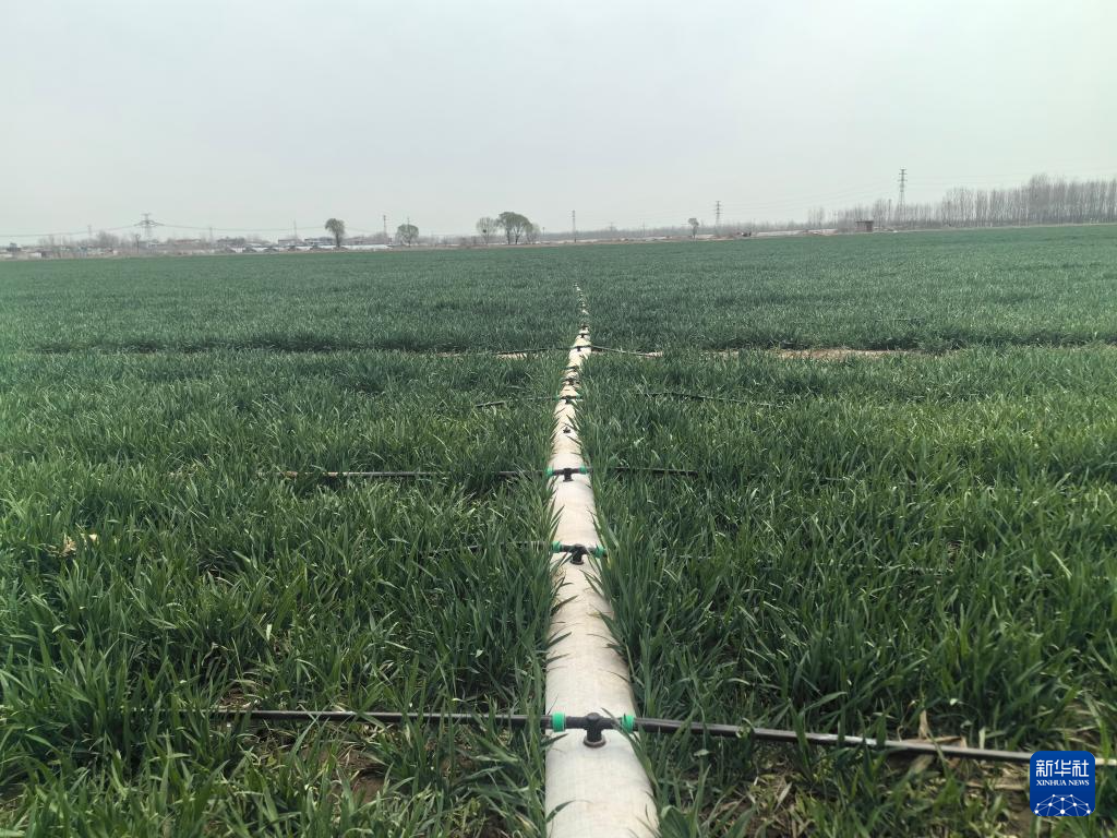 新华社石家庄3月17日电(记者赵鸿宇)天气渐暖,华北平原春耕春管有序进行,河北省磁县东高录村种粮大户张瑞的120亩麦田绿意盎然,中间一条条黑色软管引人注意。