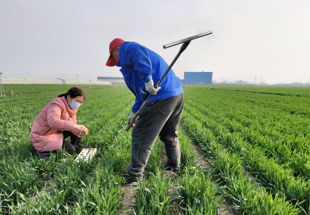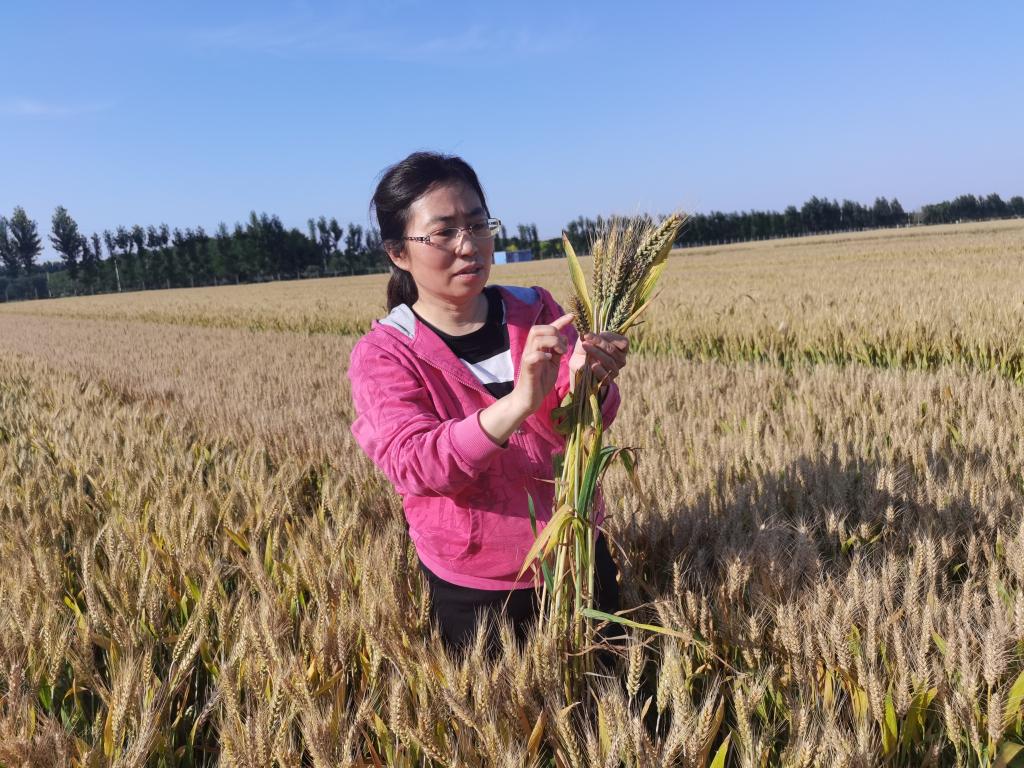 “曹研究员每次来景县,都会先到农田查看农作物长势。”景县粮丰种植业农民专业合作社董事长曹风行说。去年6月,曹彩云带领团队来到合作社的麦田里,进行收割前最后一次田间观测和试验测产。为确保数据精准可靠,他们头顶烈日,手持各类测量工具,奔波在多个小麦参试品种的农田中。