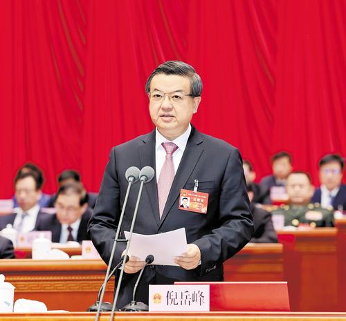 省委书记、省人大常委会主任,大会主席团常务主席、执行主席倪岳峰主持会议并讲话。记者 赵海江摄