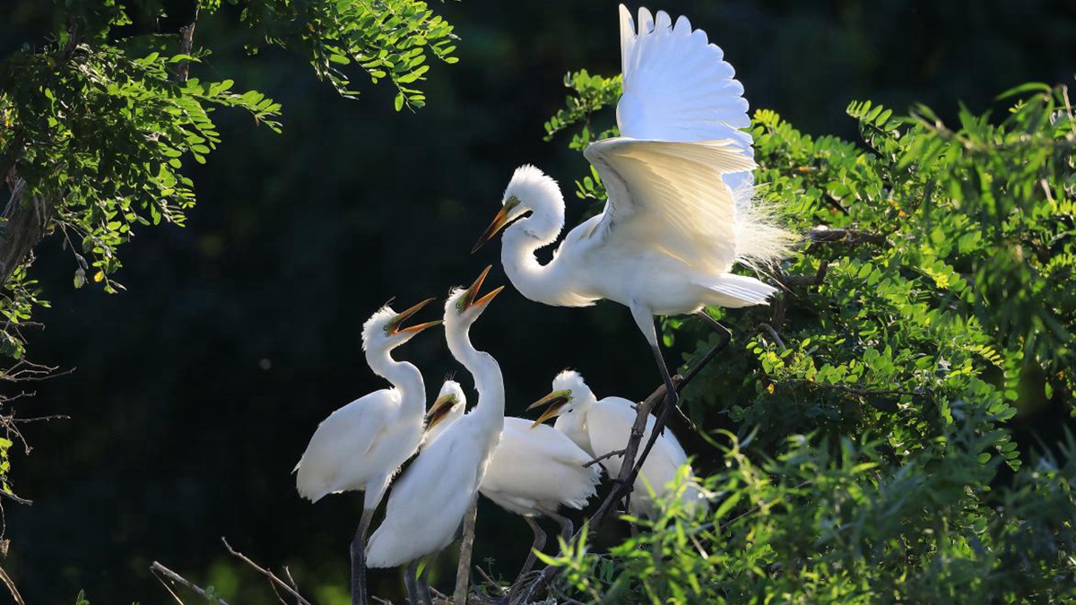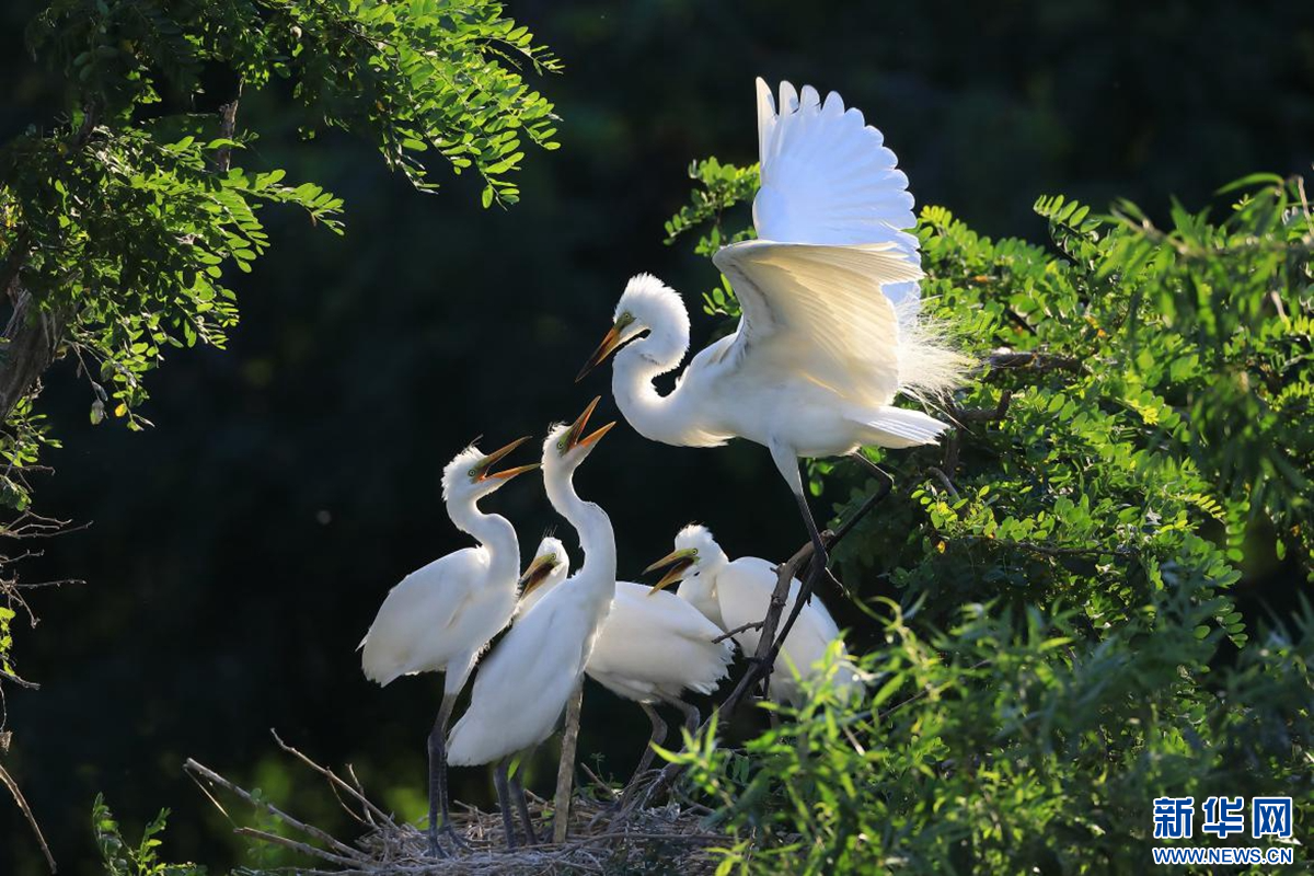 白鹭育雏。曹妃甸湿地和鸟类省级自然保护区供图