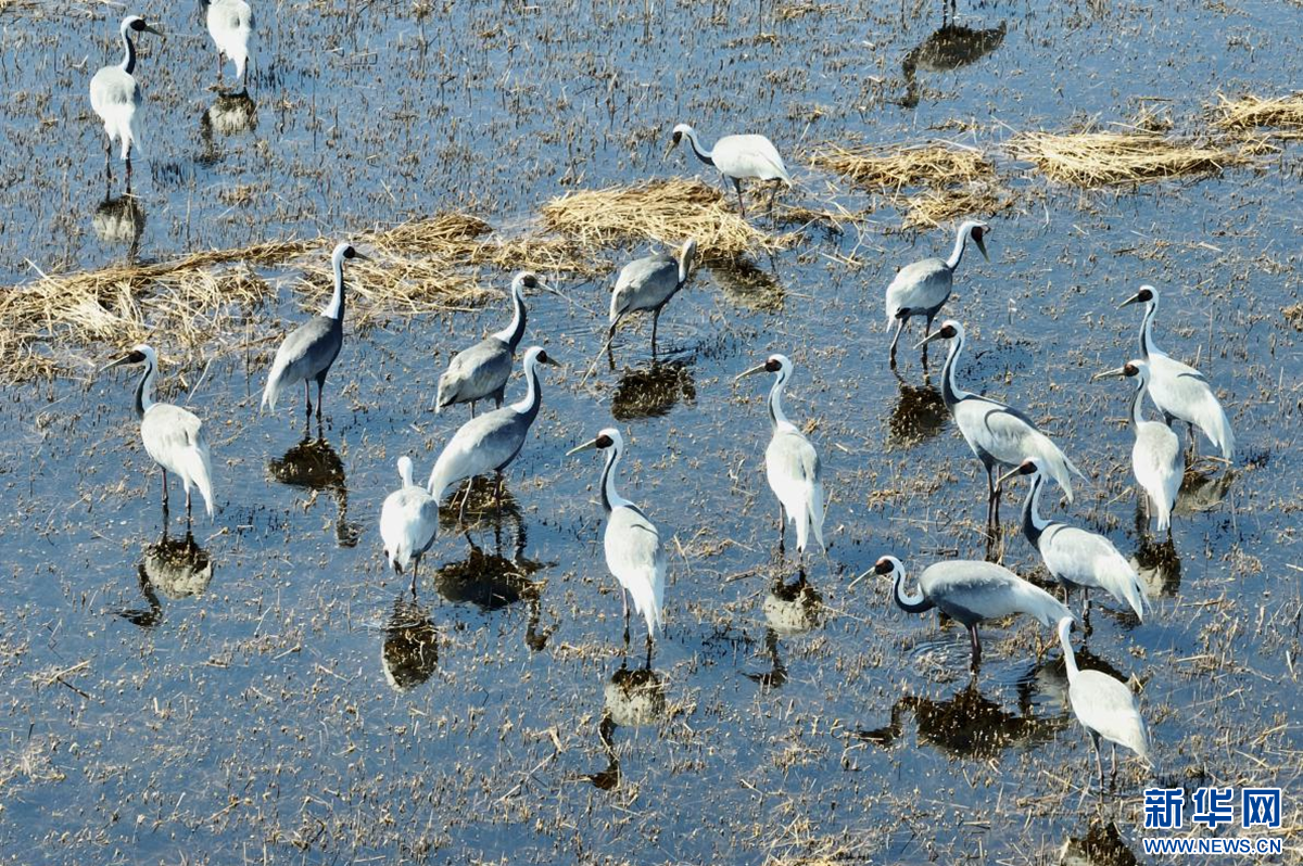 白枕鹤在南大港湿地栖息。刘洪睿 摄