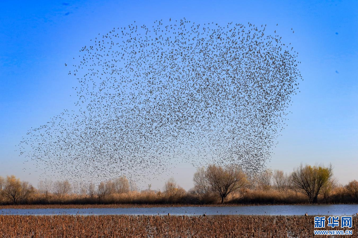 衡水湖湿地越冬候鸟齐飞,形成“鸟浪”奇观。河北衡水湖国家级自然保护区供图