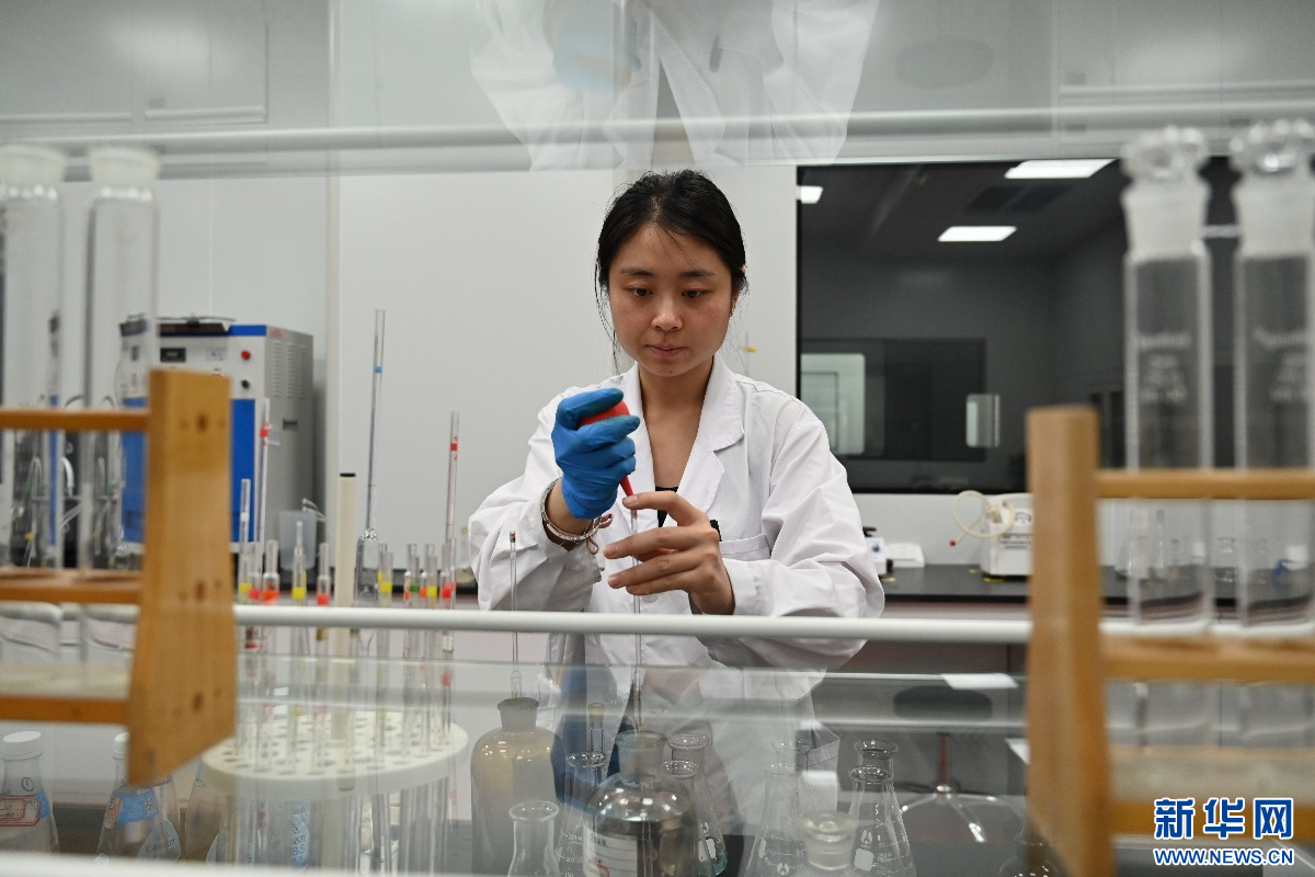 一名技术人员在对葡萄酒产品做研究。昌黎县供图