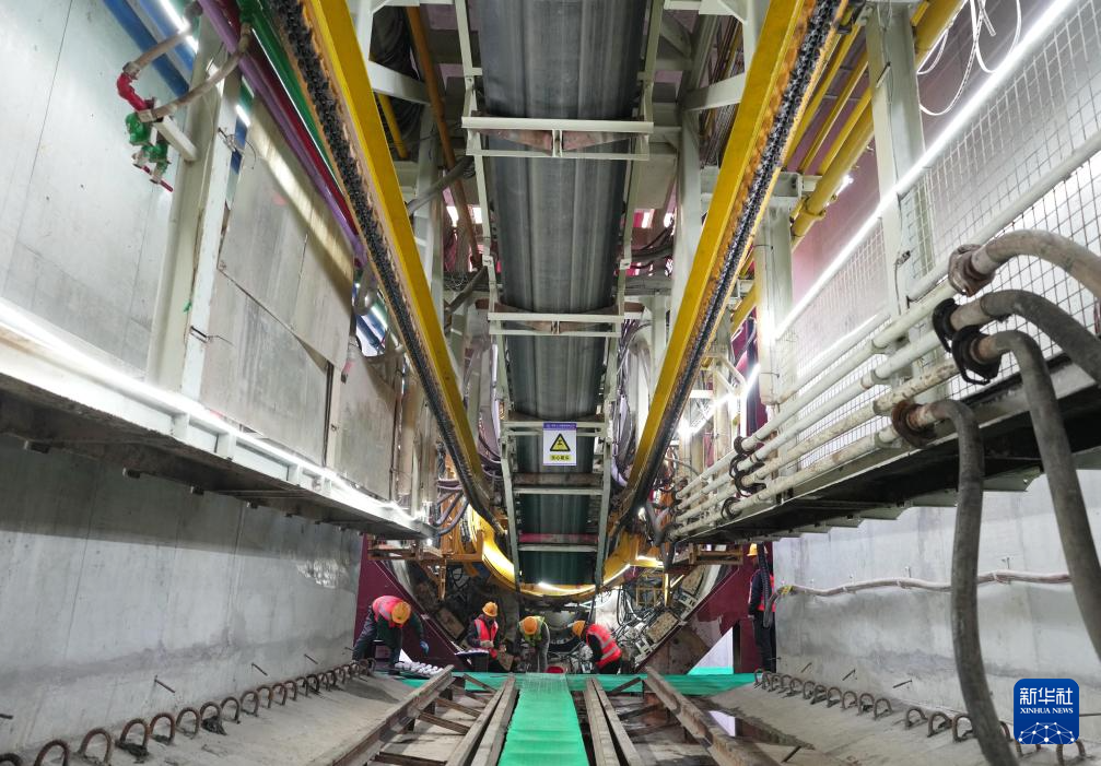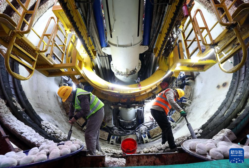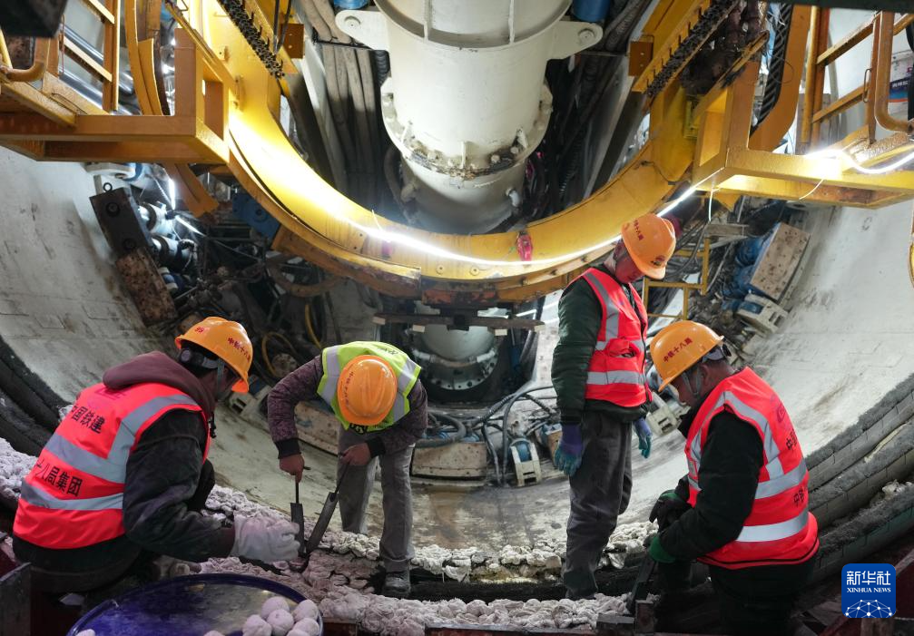 2月28日,中铁十八局集团的工人在石家庄市地铁5号线一期工程01工区宫北路站至红旗南大街隧道建设工地施工。