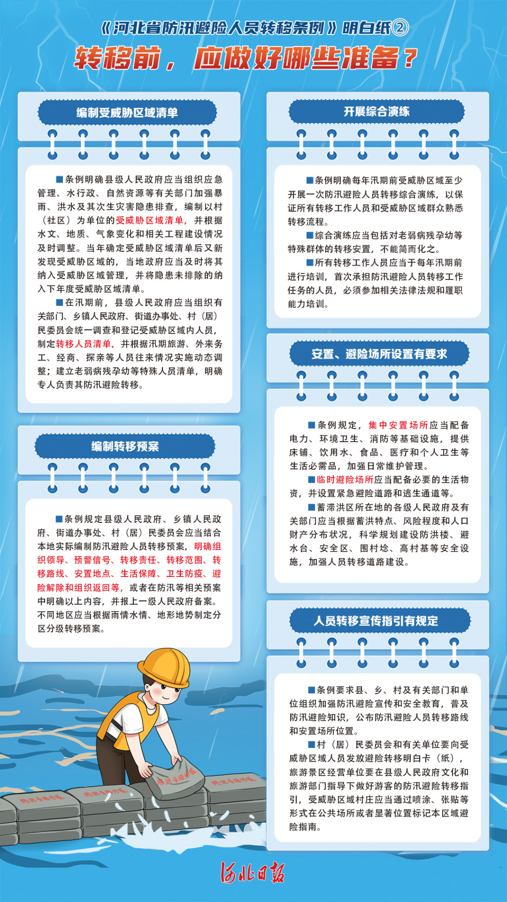 今年汛期是《河北省防汛避险人员转移条例》(以下简称《条例》)实施后的第一个汛期。《条例》的宣传普及和贯彻落实至关重要。河北日报近期推出的系列长图《条例》明白纸,受到广泛好评。应广大网友要求,我们特意制作了《条例》明白纸高清大图版,供全省各地、各单位和有需求的个人下载打印,张贴悬挂。让我们一起行动起来,全力防汛备汛。