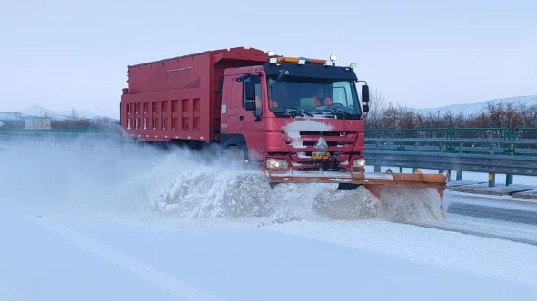 ↑12月11日,河北高速集团承德分公司在开展除雪作业。