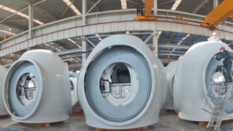 张北运达风电有限公司是国内新能源装配行业的龙头企业,从2009年6月建成投产以来,生产的风电机组功率由最早的0.75兆瓦、0.8兆瓦、1.5兆瓦,发展到5兆瓦、6兆瓦,年产能达300万千瓦,产品三分之一在张北县本地消纳,还销往晋冀蒙和东北等地,即将下线的9兆瓦风电机组,是他们的鼎力之作。