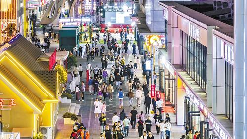 9月25日19时,夜色渐浓,霓虹灯下的湾里庙步行街游人如织。