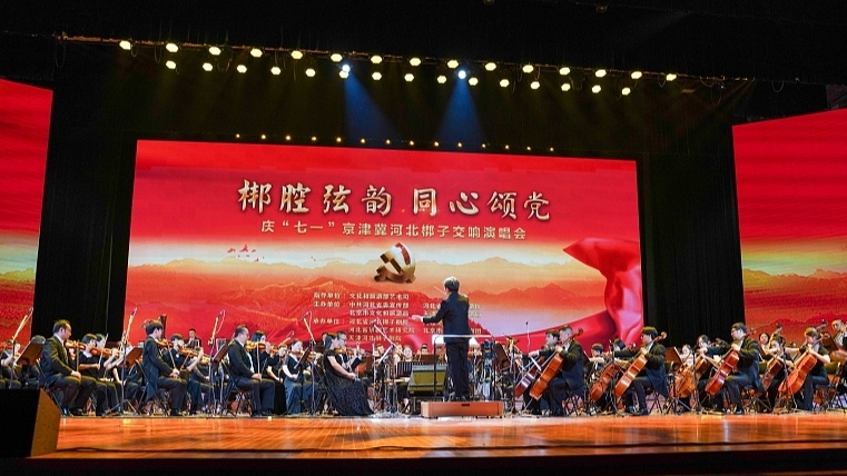 6月30日晚,伴随着雄壮有力、荡气回肠的管弦乐《红旗颂》开场,“梆腔弦韵 同心颂党”——庆“七一”京津冀河北梆子交响演唱会在石家庄人民会堂精彩唱响。