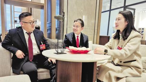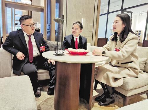 你一言我一语,三位委员谈兴十足……(记者 王 营)