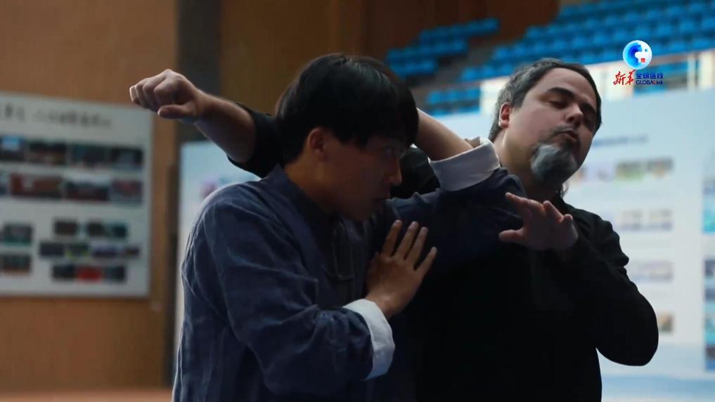 国家级非物质文化遗产代表性项目沧州武术(孟村八极拳)省级代表性传承人吴大伟与他们切磋武艺、交流文化。