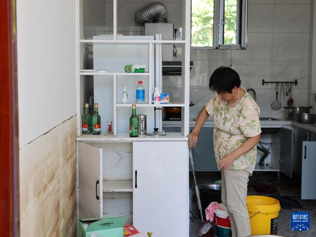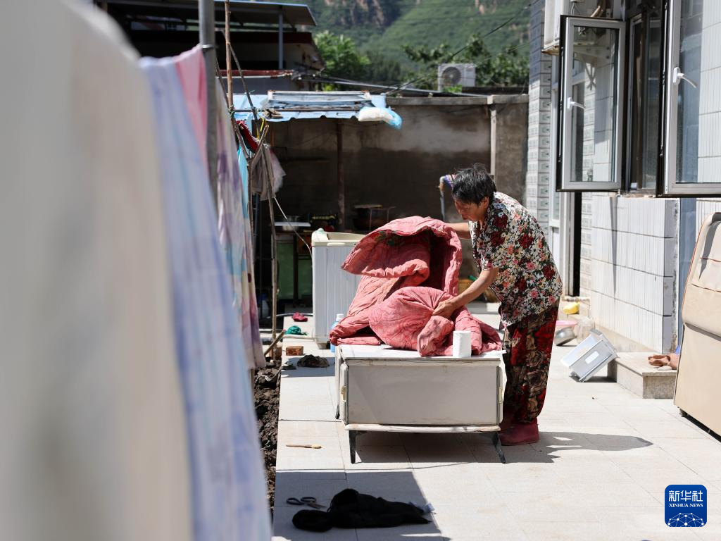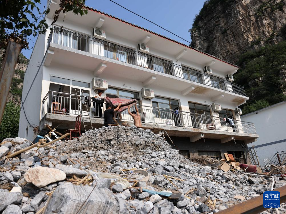 8月15日,河北涞水县三坡镇都衙村四背峪村民小组的村民在清理家中杂物。