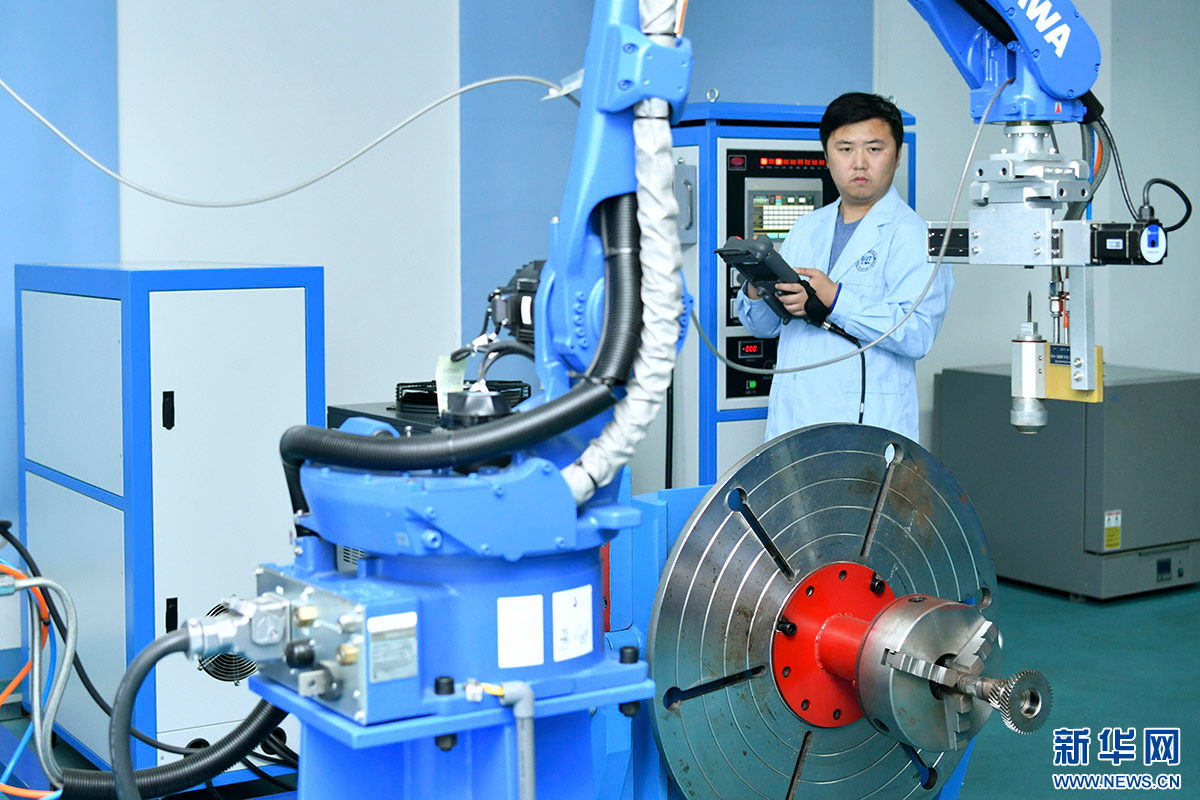 技术人员在位于河间市的京津冀再制造产业技术研究院实验室内测试产品。牟宇 摄