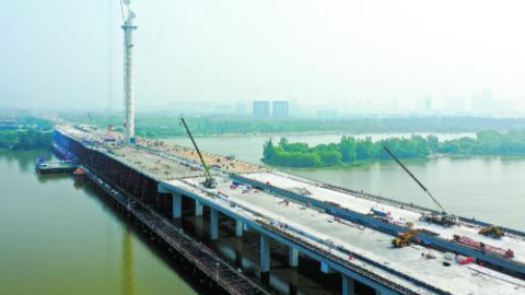 滹沱河特大桥主梁合龙后,将全面转入斜拉索安装、桥面及附属工程施工。目前,复兴大街市政化改造项目整体建设进展顺利,迎旭门、白佛、学苑路三座隧道已主体完工,泊水公园特大桥钢管拱已完成合龙,上跨石德铁路桥和互通立交等重要节点工程正在全速推进,全线已开始大规模路面施工。