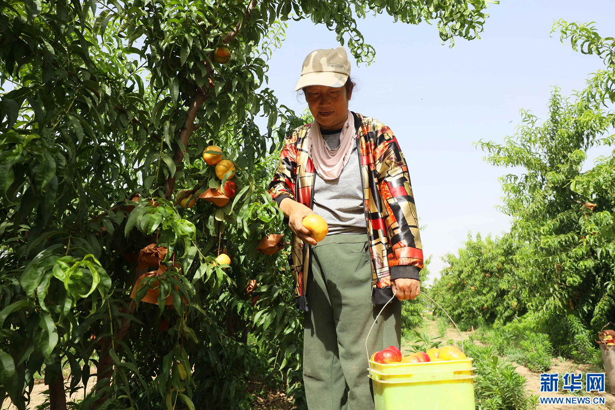 盛夏时节,在河北省南宫市油蟠桃种植基地,果农们忙着采摘、分拣、装运油蟠桃供应市场,一派忙碌的丰收景象。近年来,南宫市在推进产业富民的过程中,以市场为导向,调整农业产业结构,先后引进油蟠桃、水蜜桃、雪桃等优质品种,形成梯次成熟果业结构,促进农民增收。