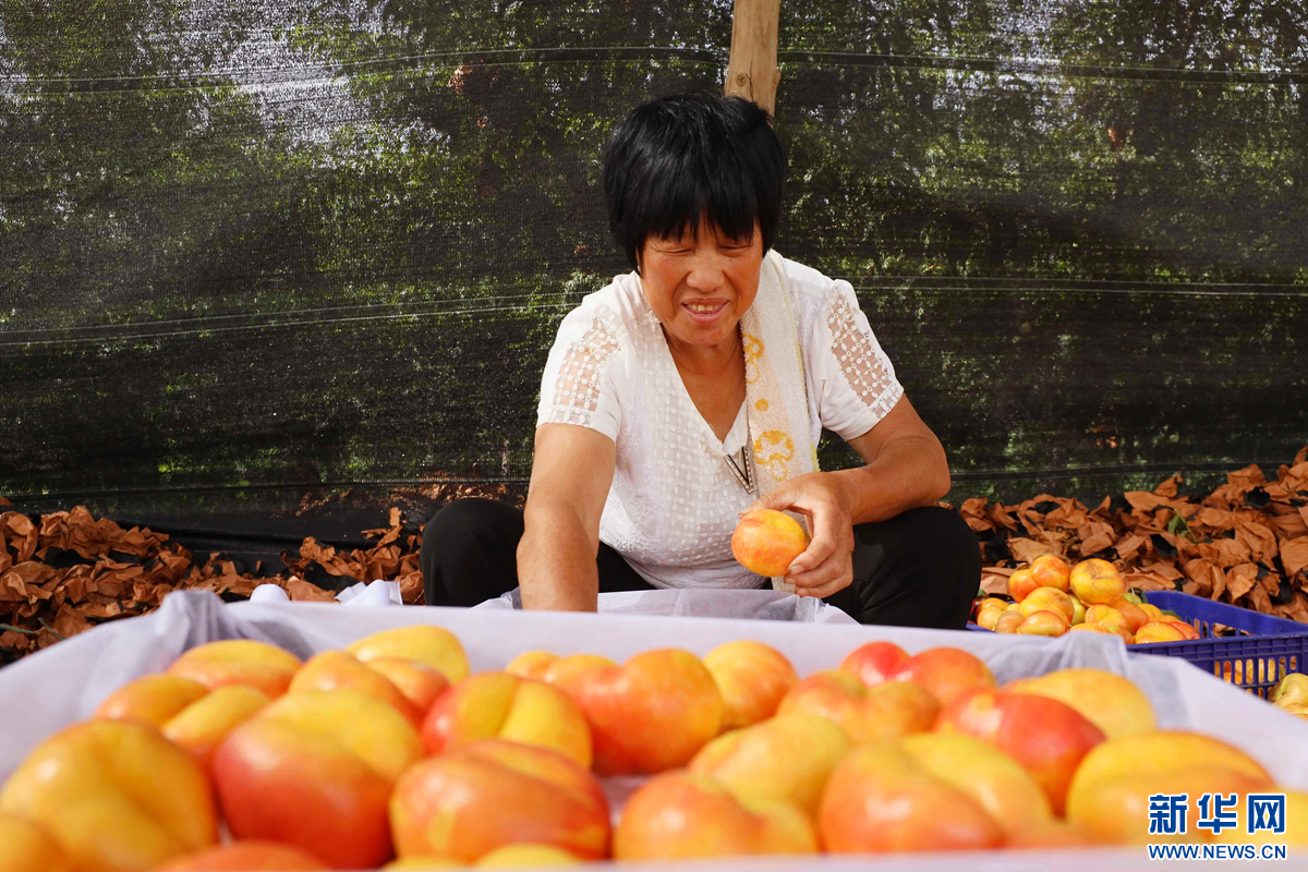 成熟的油蟠桃散发着诱人的果香。新华网发 田优 摄