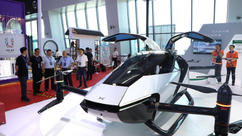 超低空飞行汽车样式新颖,充满科技气息。新华网 王立鹏 摄