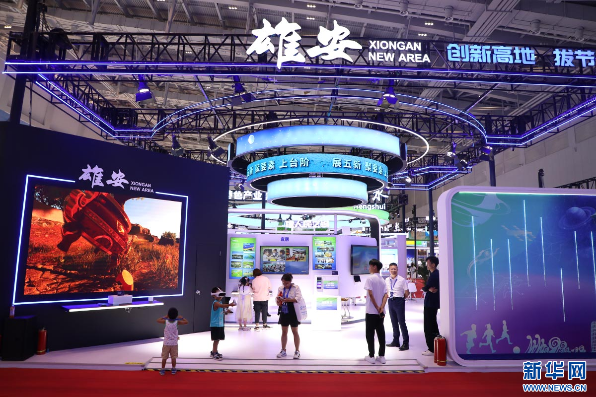 在雄安新区展区,一位小朋友利用手柄体验ai虚拟场景。新华网 王立鹏 摄
