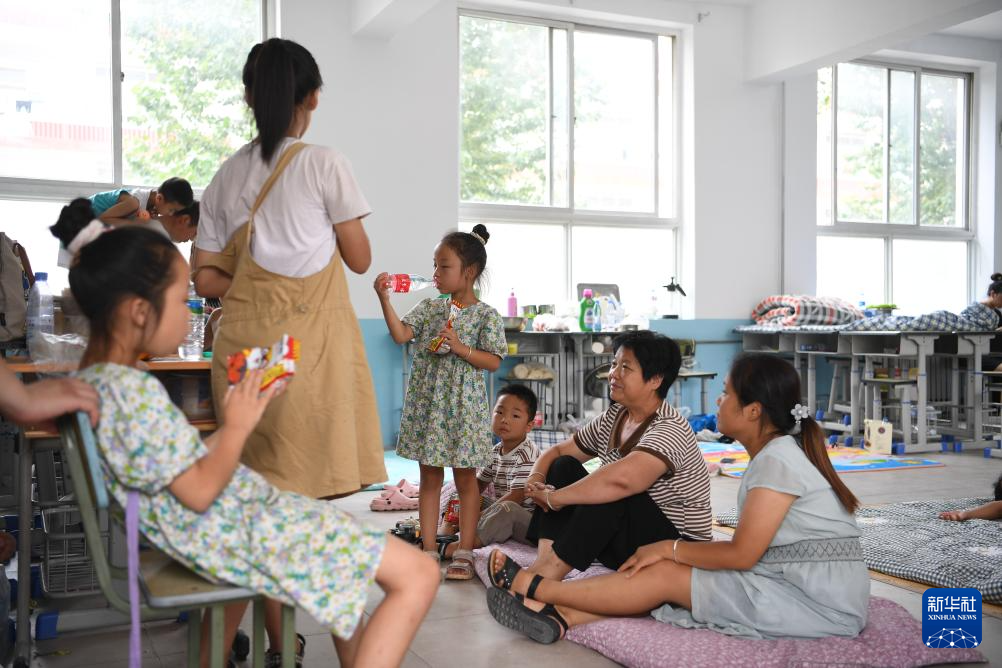 8月3日,群众在涿州市第三中学安置点内休息。新华社记者 牟宇 摄