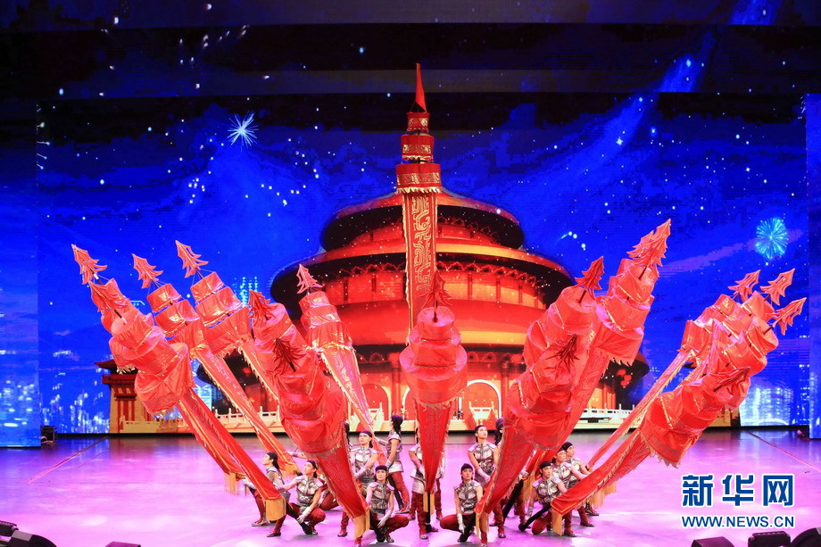 沧州杂技演员表演荣获中国杂技金菊奖的杂技节目《龙跃神州——中幡》。刘文忠 摄
