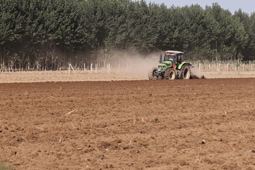 8月18日,工作人员驾驶农业机械在河北省涿州市豆庄镇白马庄村进行灾后复耕。新华社记者 骆学峰 摄
