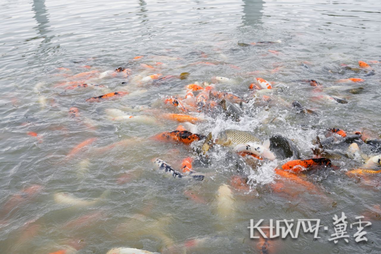 “莲园”湖中雀跃的锦鲤。长城网·冀云客户端记者 邢鹏飞 摄