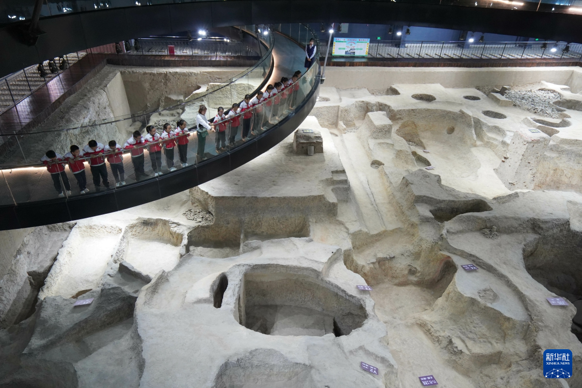 2019年9月17日,河北省内丘县实验小学师生在邢窑遗址博物馆内参观。新华社记者 朱旭东 摄