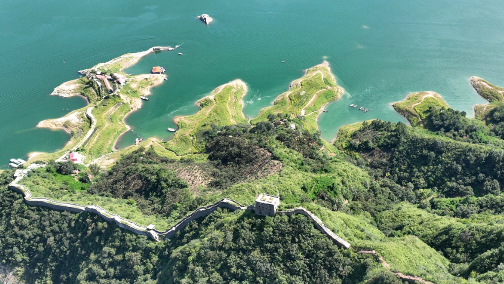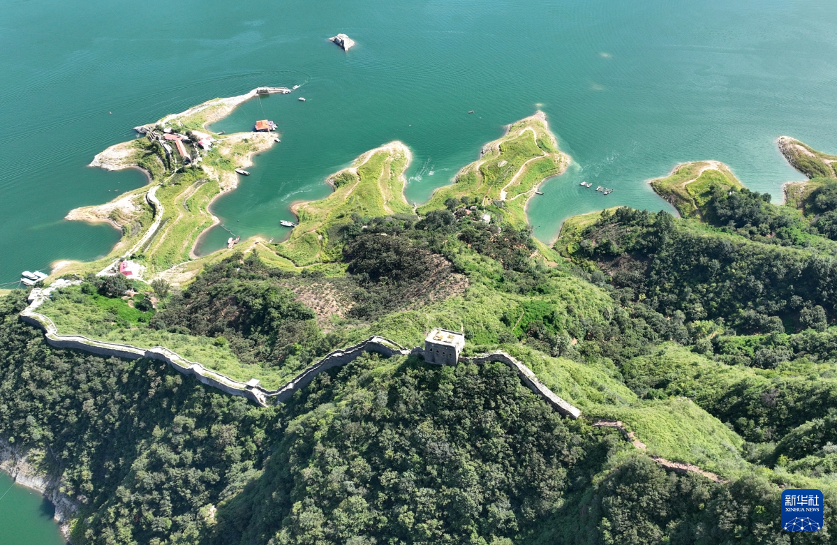 2023年8月30日,这是河北唐山迁西县“水下长城”风光(无人机照片)。新华社记者 牟宇 摄