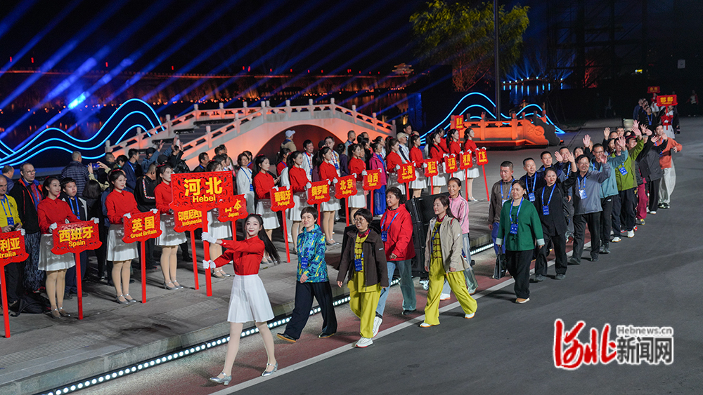 10月24日晚,第十五届中国·邯郸国际太极拳运动大会开幕式在邯郸广府古城举行。图为运动员代表入场。河北日报记者董源摄