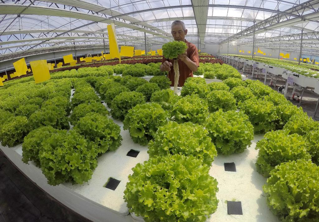 6月1日,在石家庄藁城区河北炫梦农业科技有限公司雾培生菜联栋温室大棚,工作人员在收获生菜。