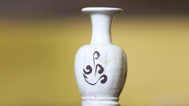 现收藏于海丰镇遗址博物馆的白釉褐彩瓶,是金代生活类器物。白釉褐彩瓶图案为褐色云气纹,纹饰细腻,造型古朴自然,展现了当时磁州窑的高超技艺。白釉褐彩瓶的出现,为当时民众的生活增添了意趣。