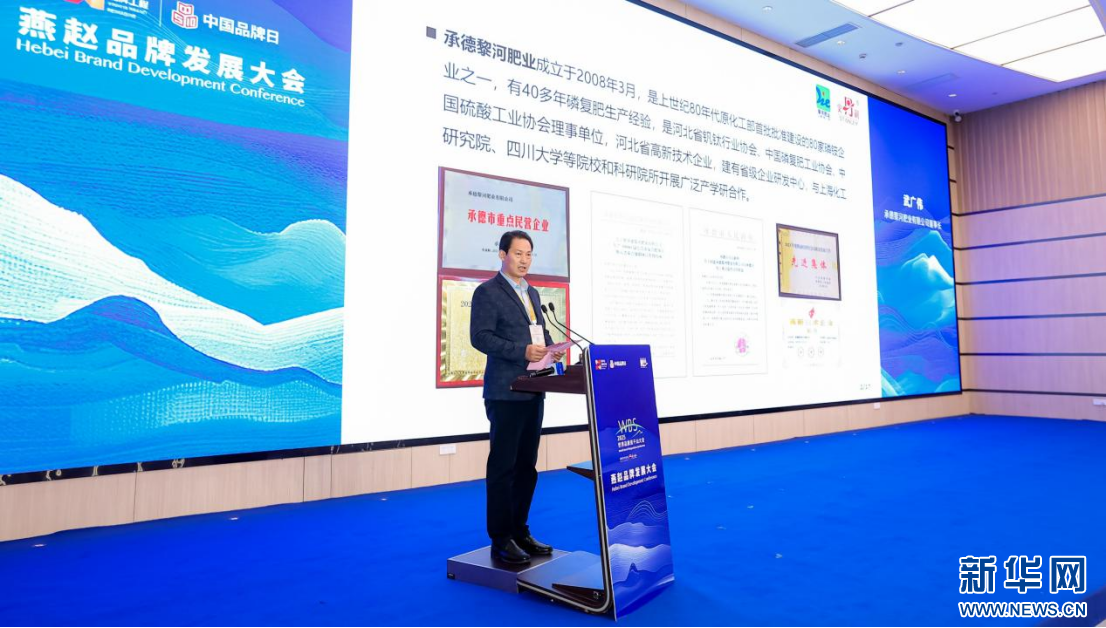 承德黎河肥业有限公司董事长武广伟在大会上以“开发利用低品位磷矿 打造北方磷复肥基地”为主题作品牌发布。新华网 发