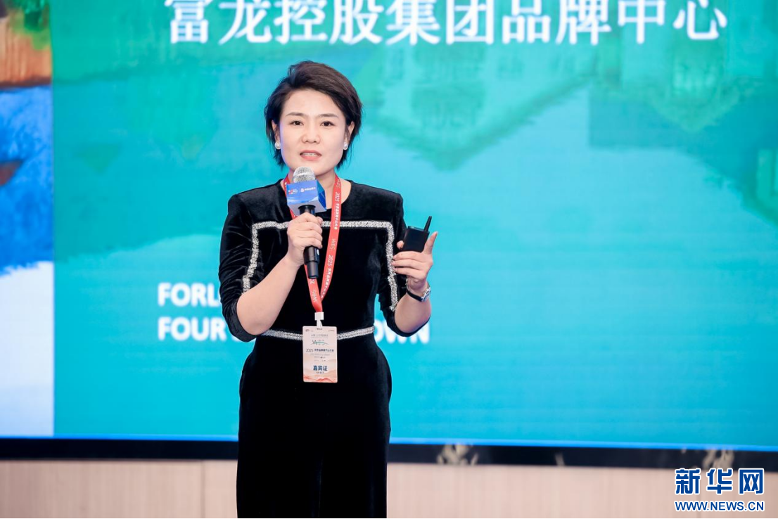 富龙控股集团品牌中心媒介经理李娟在大会上作品牌推介。新华网 发