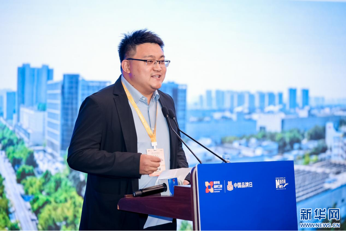 旗帜婴儿乳品股份有限公司副总裁袁建立在大会上作品牌推介。新华网 发